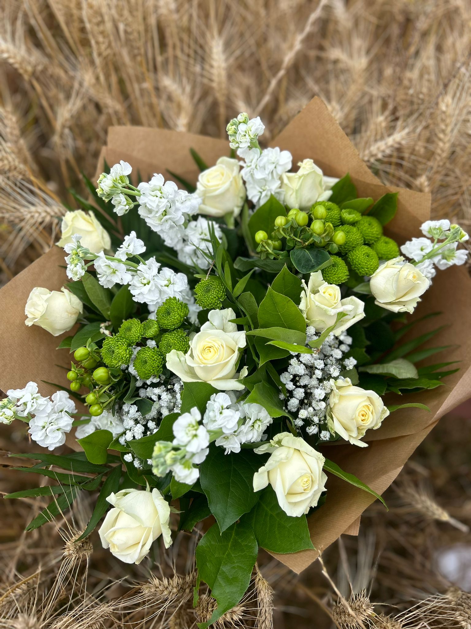 Variété 💐 : Rose, Hypericum, Giroflée, Santini, Feuillage, Gypsophile